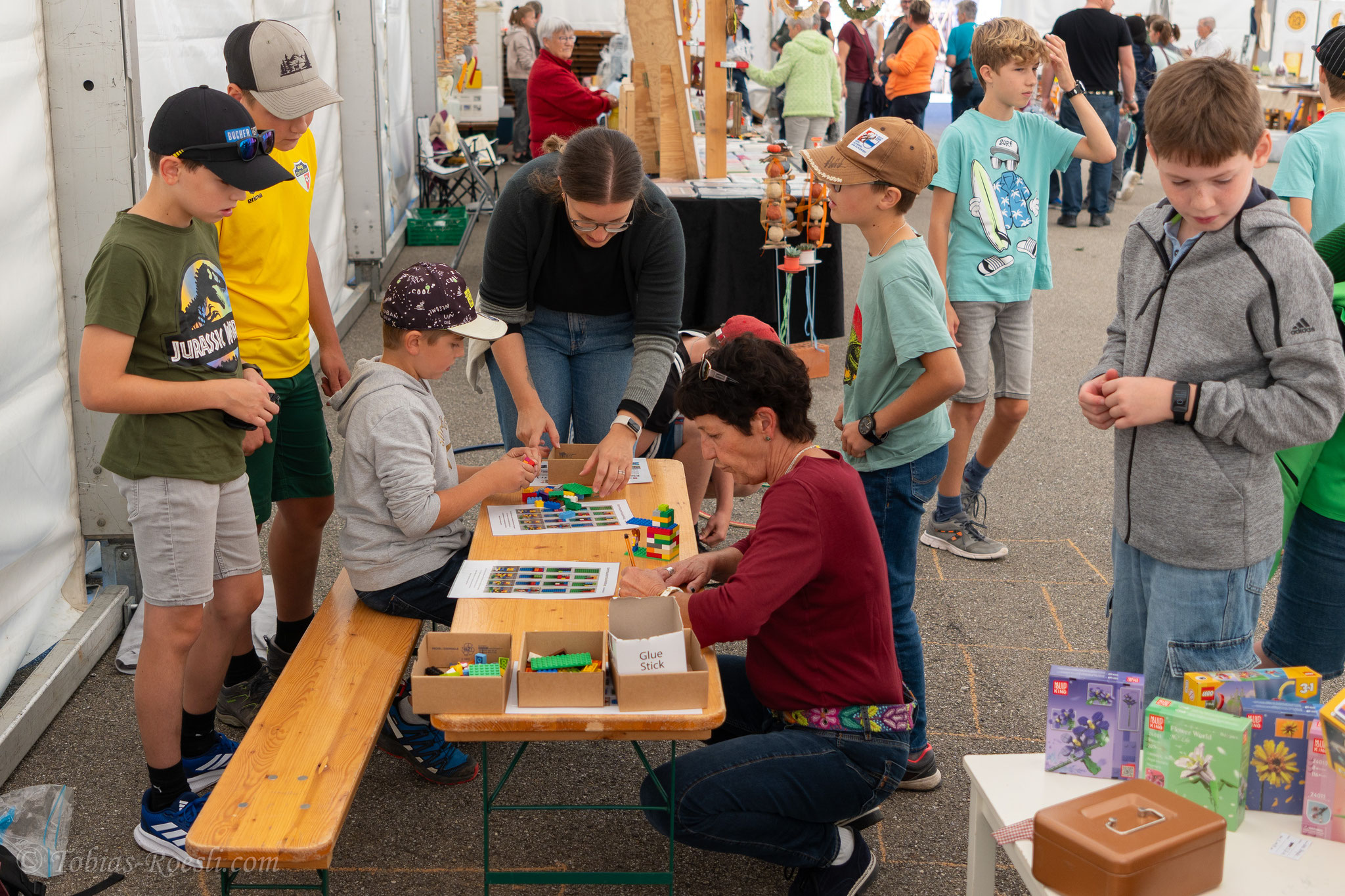 Am Ende der Projektwoche konnten Eltern, Verwandte und Bekannte der Lernenden das «Schulhaus-Dorf» besuchen. Die unterschiedlichen Ateliers stellten Bilder und Werke aus, zeigten ihre Filme und Fotos oder verkauften ihre Produkte wie hausgemachte Zöpfe oder Kosmetikprodukte. In der Dorf-Kita gab es zahlreiche Angebote für die Kleinsten und in der Dorf-Bar sowie im Restaurant «Bärgstobä» konnte man sich kulinarisch verwöhnen lassen. Zudem führte das Atelier «Glücksache» eine grosse Tombola mit vielen tollen Preisen durch.
