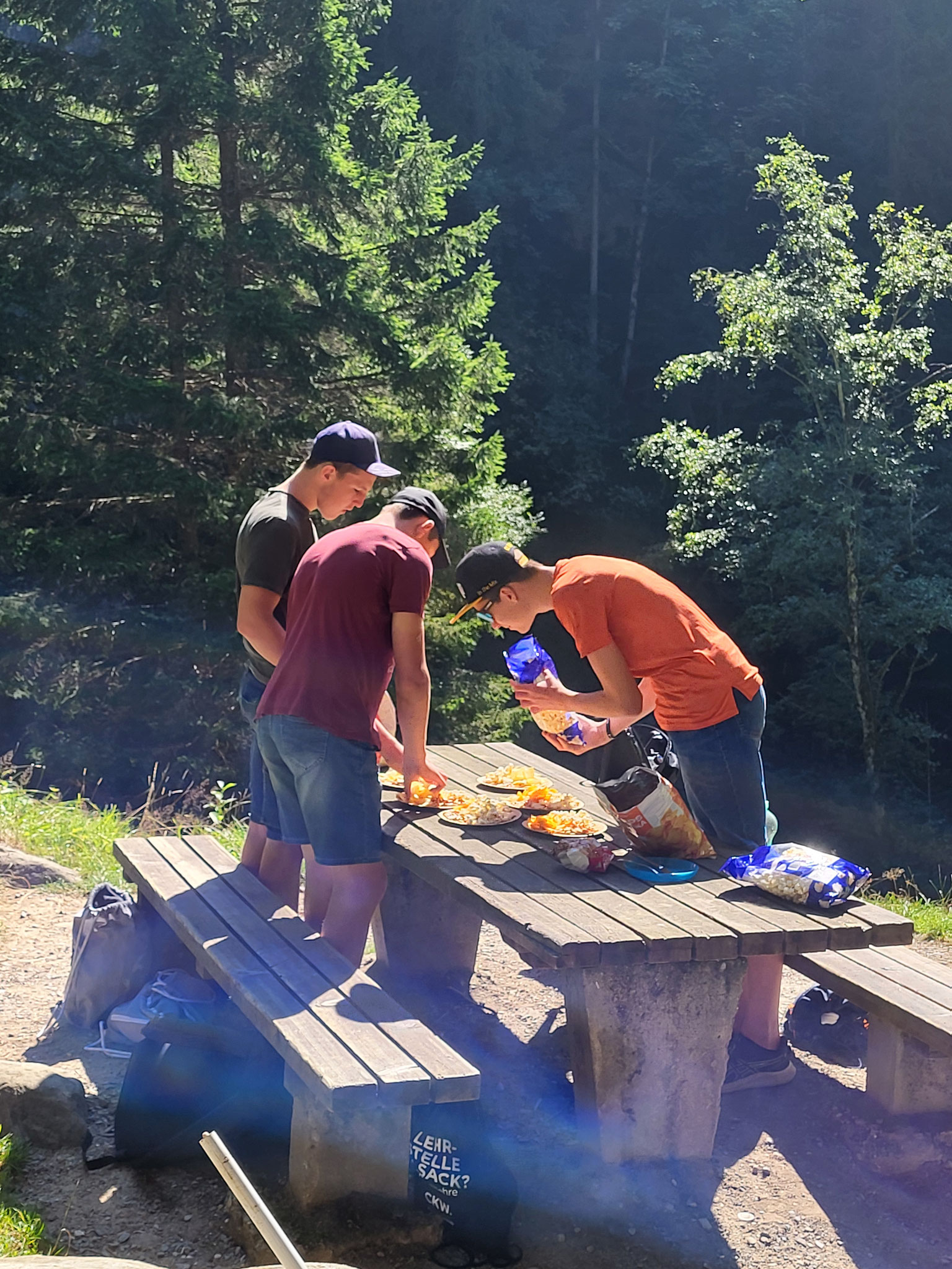 Am Freitagmittag trafen sich alle Gruppen im Sagenwäldli zum gemeinsamen Mittagessen und zum Projektwochenabschluss.