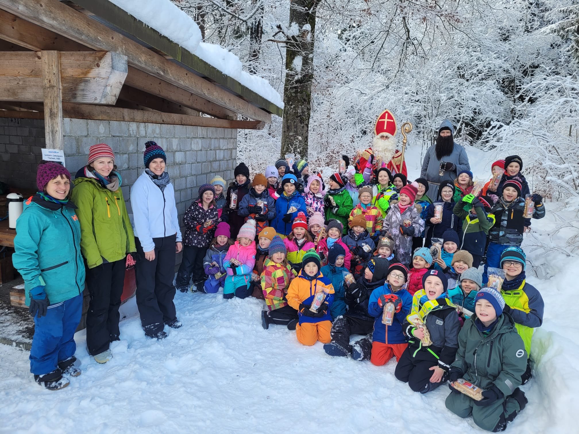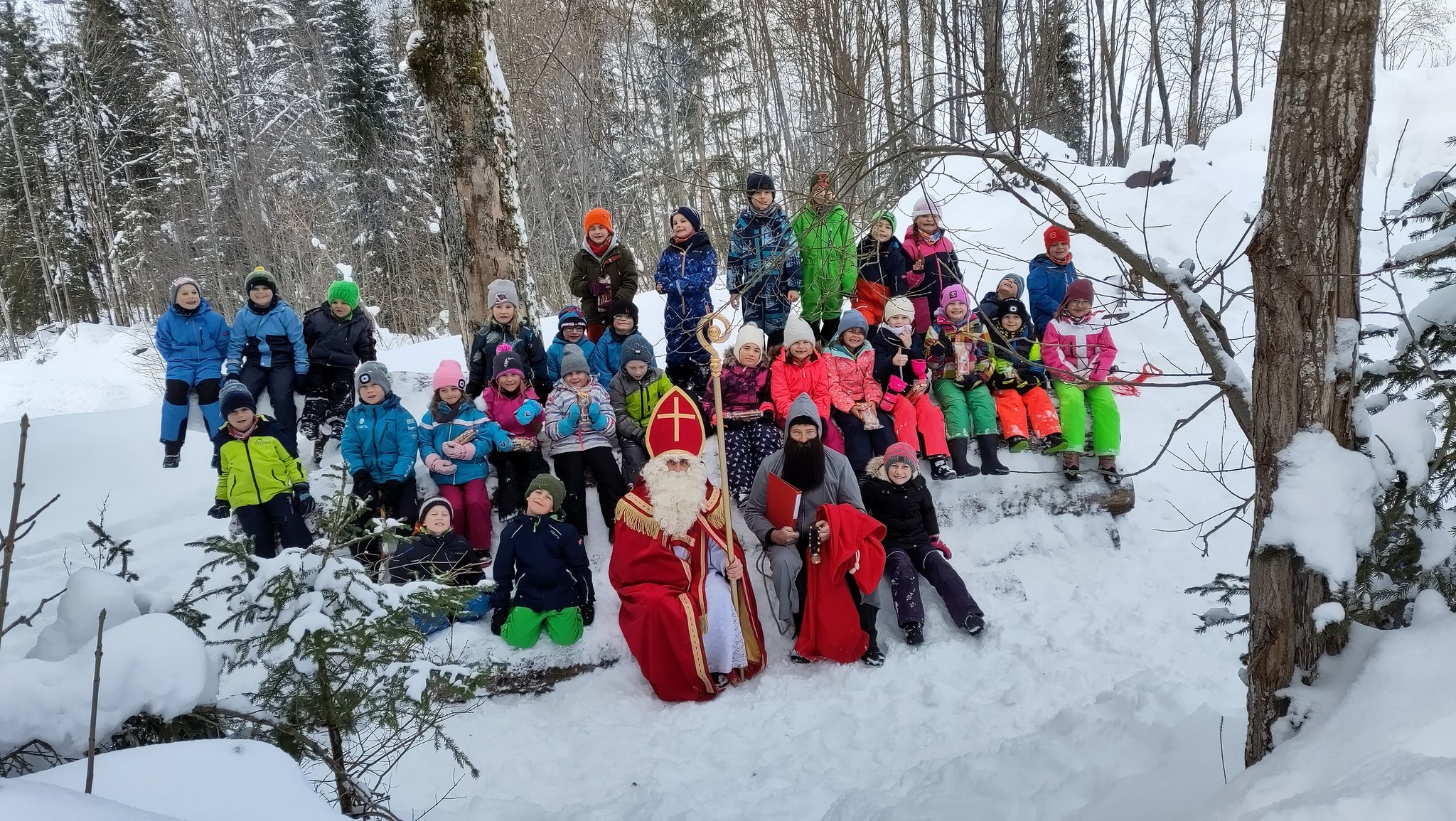 Ebenso überraschte uns der Samichlaus bei unserem Waldbesuch. Die Freude der Kinder war riesengross.