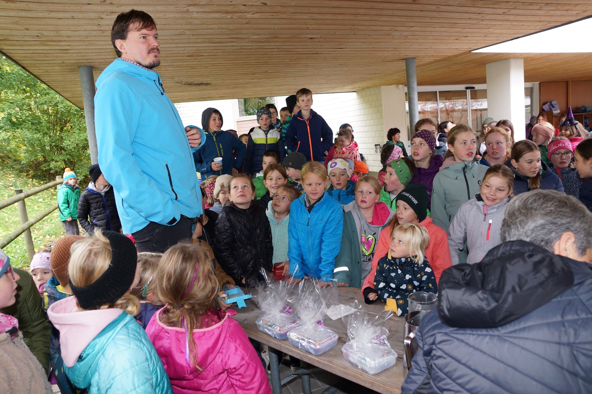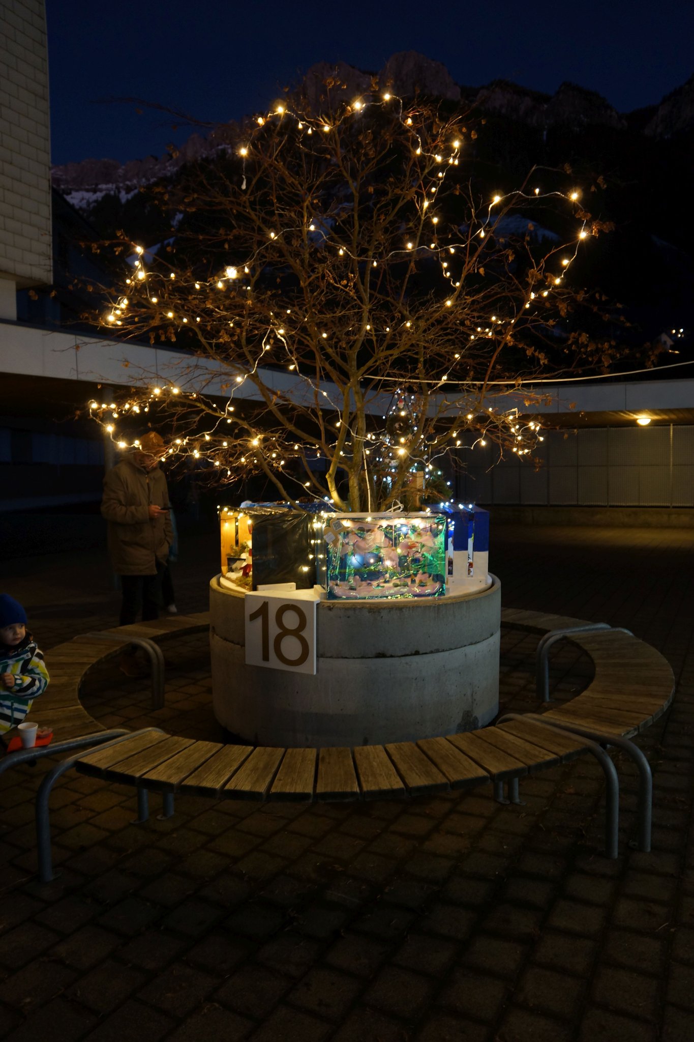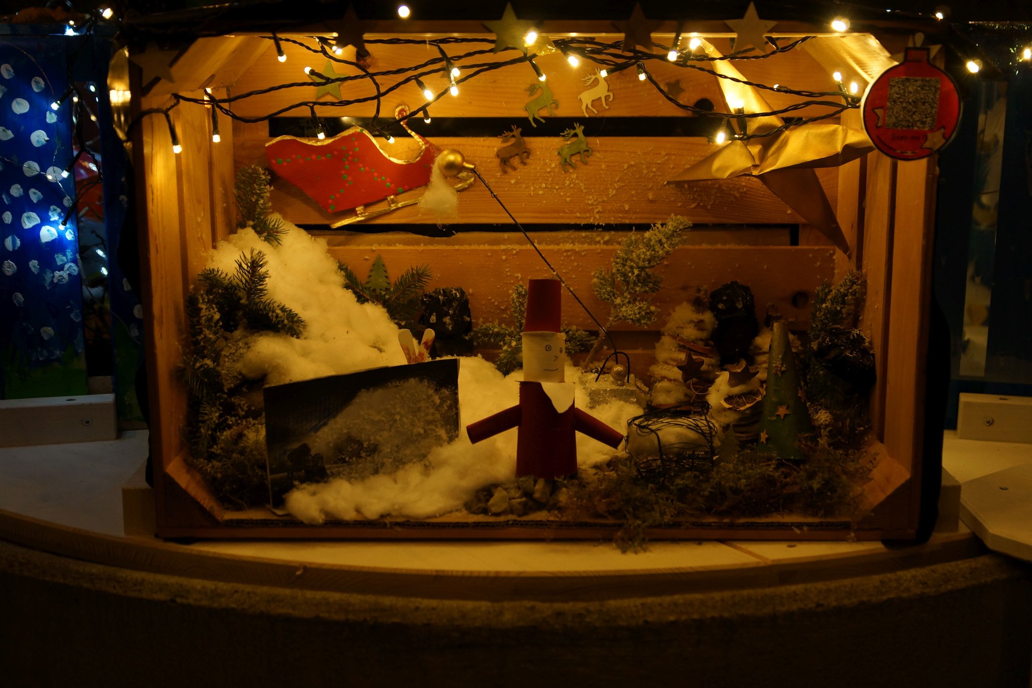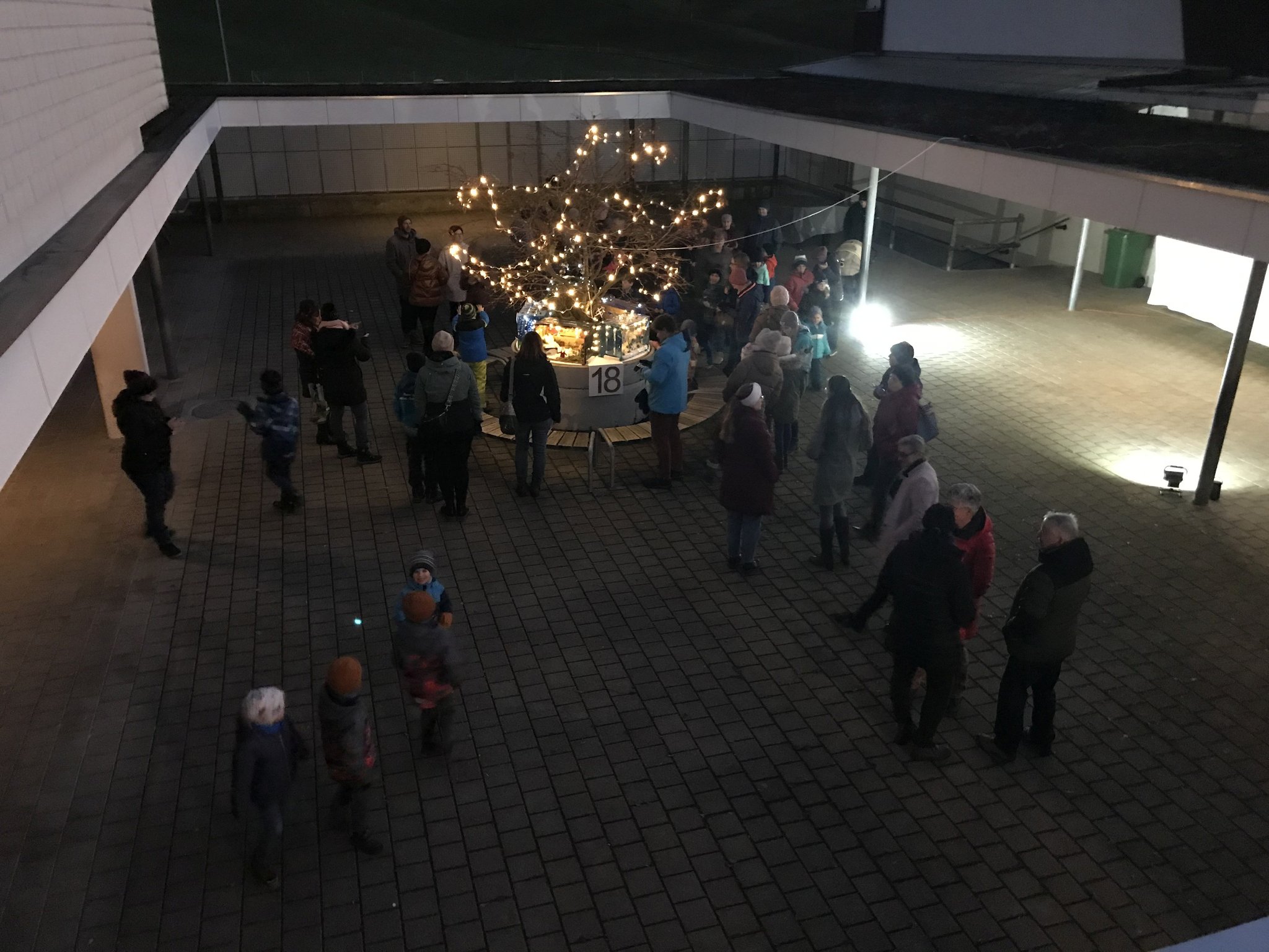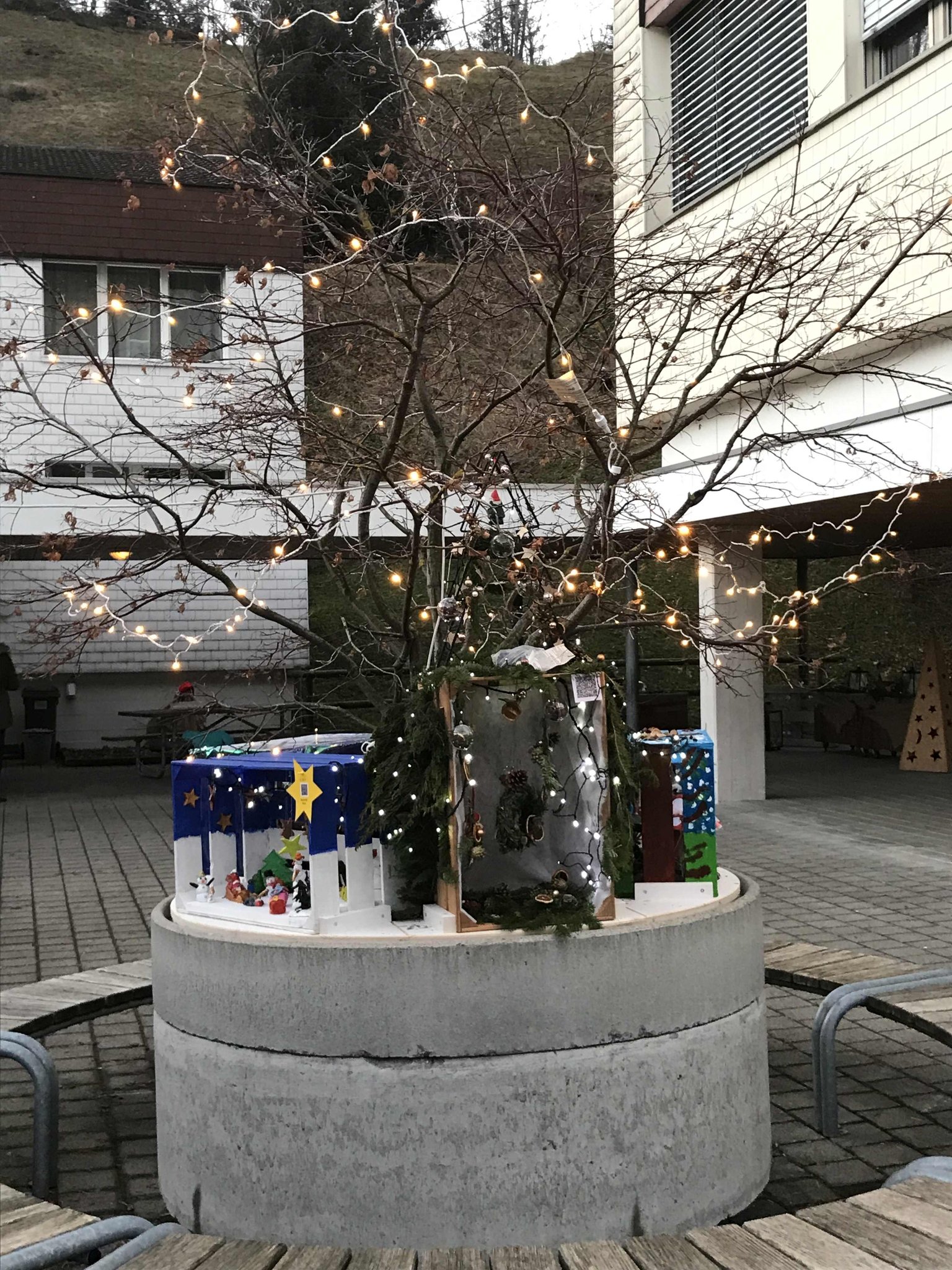Am Montag, 18. Dezember 2023, durften wir in der Pausenhalle unser Weihnachtsfenster, resp. die Weihnachtsinstallation präsentieren. Die Gotte-/Göttiklassen hatten je eine Harasse weihnachtlich gestaltet, welche auf dem Sockel des Baumes in der Pausenhalle installiert und mit Beleuchtung versehen wurden. Zahlreiche Gäste besuchten die Eröffnung und konnten auch die gelungenen Darbietungen der Tanzgruppe von sieben Mädchen aus den 5./6. Klassen sowie der 1. und 2. ISS. Das Elternforum war für die Verpflegung mit Punch, Glühwein und Kuchen besorgt.