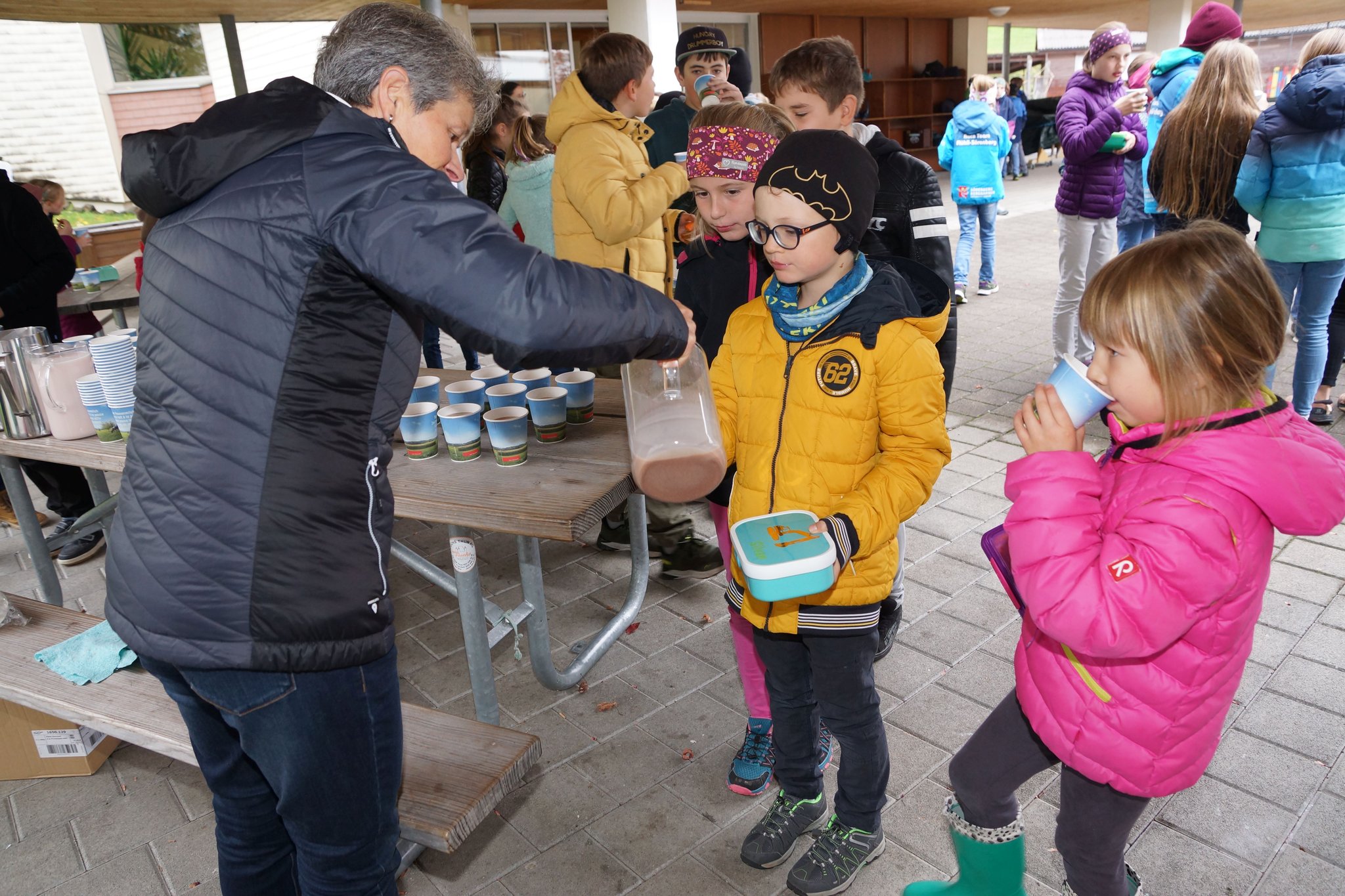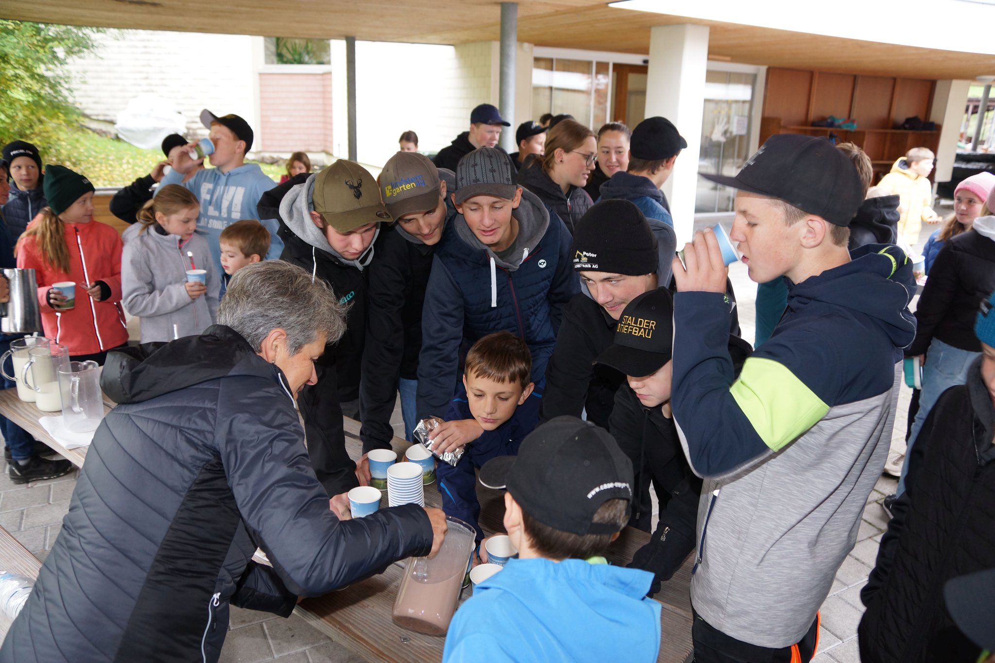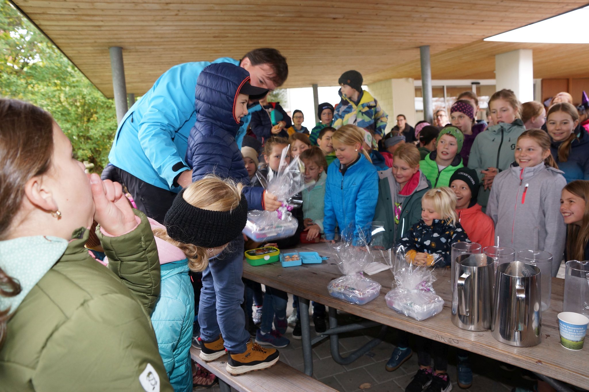 Die Vormittagspausen des 31. Oktobers 2023 waren an den meisten Schulen der Schweiz dem Tag der Pausenmilch verschrieben. So auch an der Schule Flühli-Sörenberg, wo in beiden Schulhäusern den Schülerinnen und Schülern von Frauen des Bauern- und Bäuerinnenvereins Milchshakes angeboten wurden. In Flühli waren es Anita Tanner und Anita Schnider, welche Shakes mit Erdbeer- und Schoggiaroma oder einfach normale Milch ausschenkten. Und es schmeckte köstlich. Nicht weniger als 50 Liter Milch vermochten die rund 150 Kinder und Jugendlichen in Flühli zu verschlingen. Der Tag der Pausenmilch ist auch immer mit Wettbewerben verbunden. Im Zyklus 1 erkoren die Kinder den Sieger in einem Wetthüpfen. Der Zyklus 2 führte ein Kahoot-Quiz durch und beim Zyklus 3 war eine Schätzfrage zur Anzahl gesömmerter Milchkühe in der Region Entlebuch zu lösen. Im Zyklus 1 siegte Dario Distel (1. Klasse), im Zyklus 2 Anna Bichsel (6. Klasse) und im Zyklus 3 Dominik Bieri (3. ISS). Herzlichen Dank den Frauen des Bauern- und Bäuerinnenvereins Flühli-Sörenberg für ihr tolles Engagement.