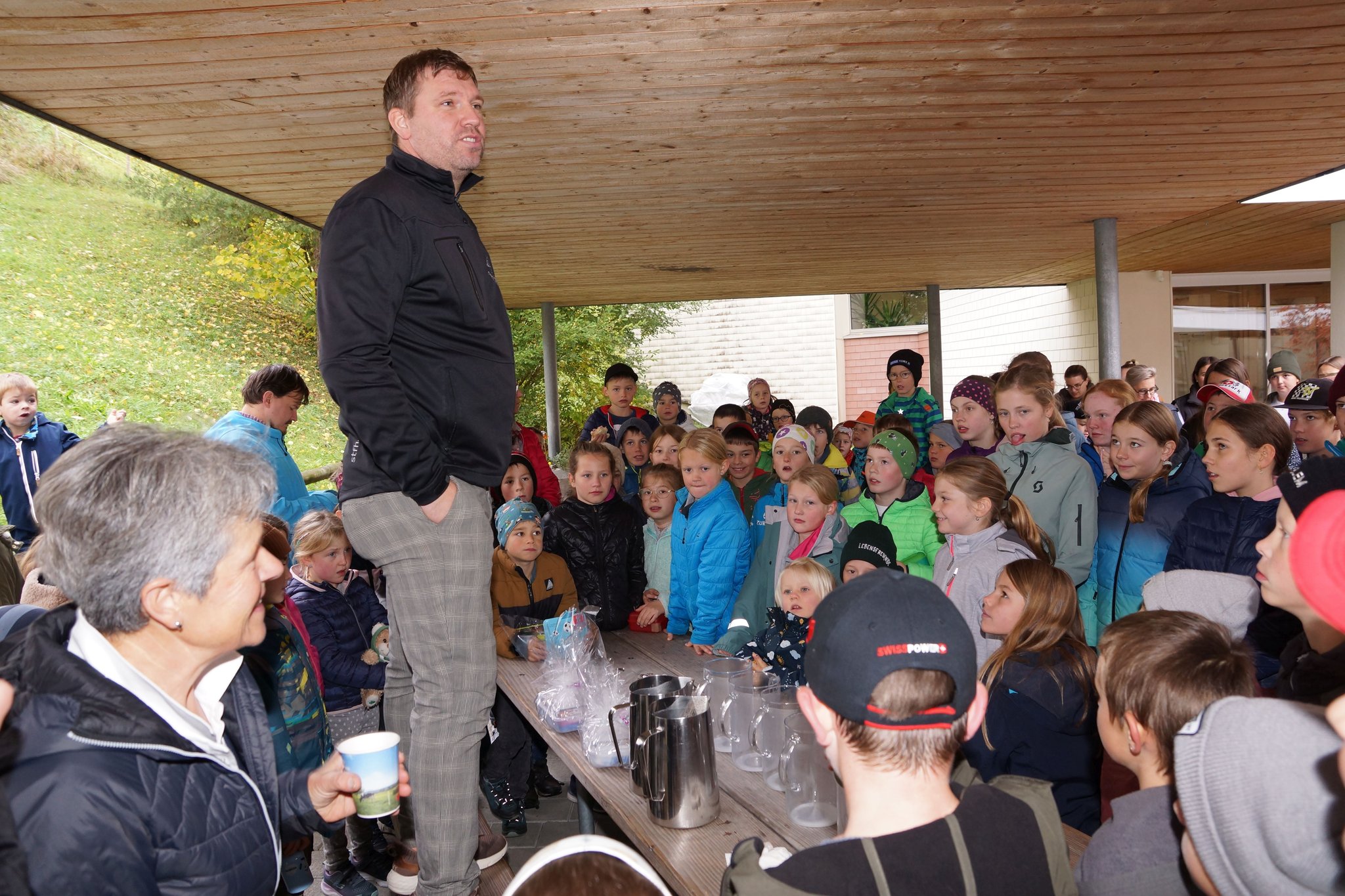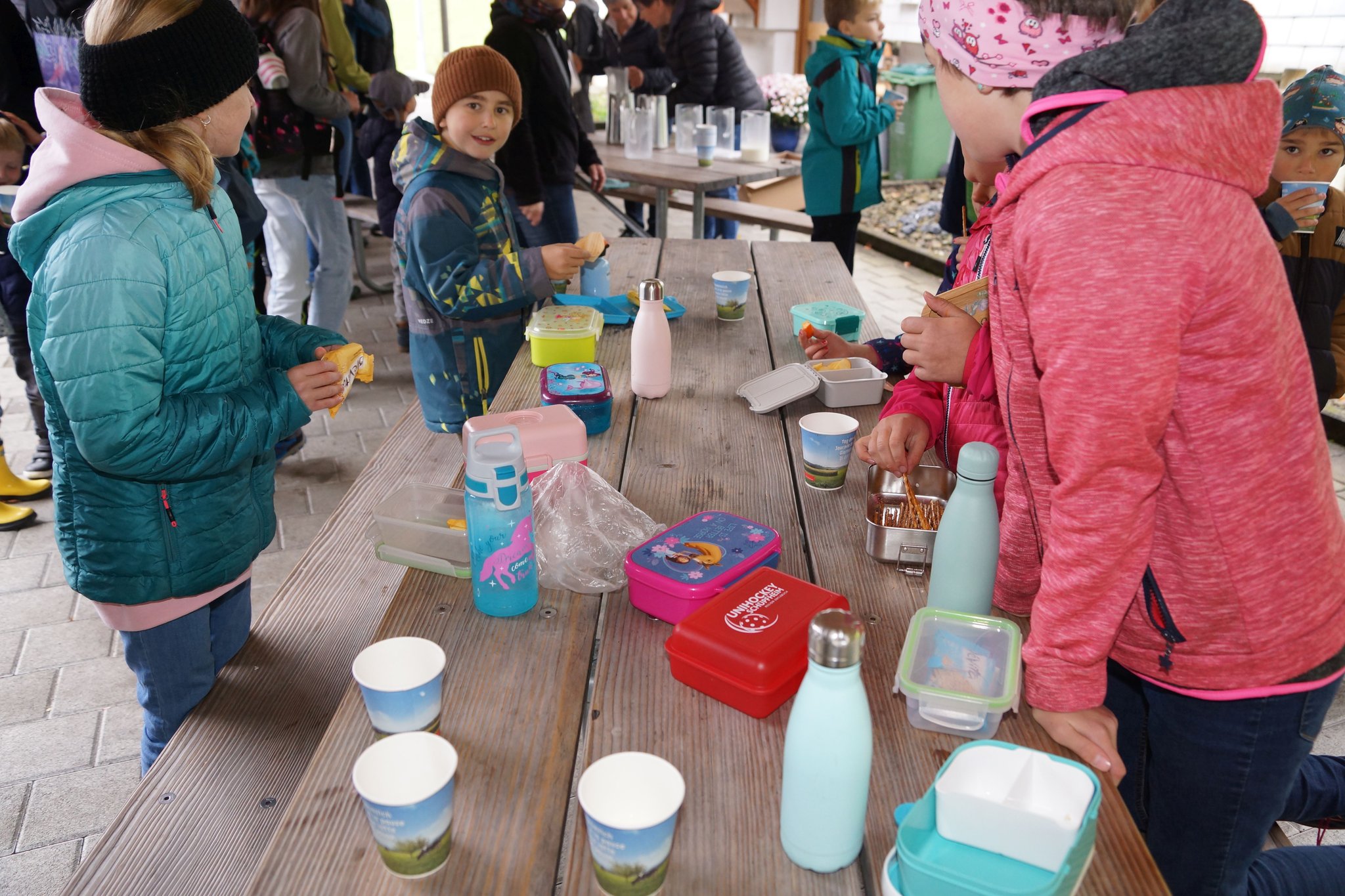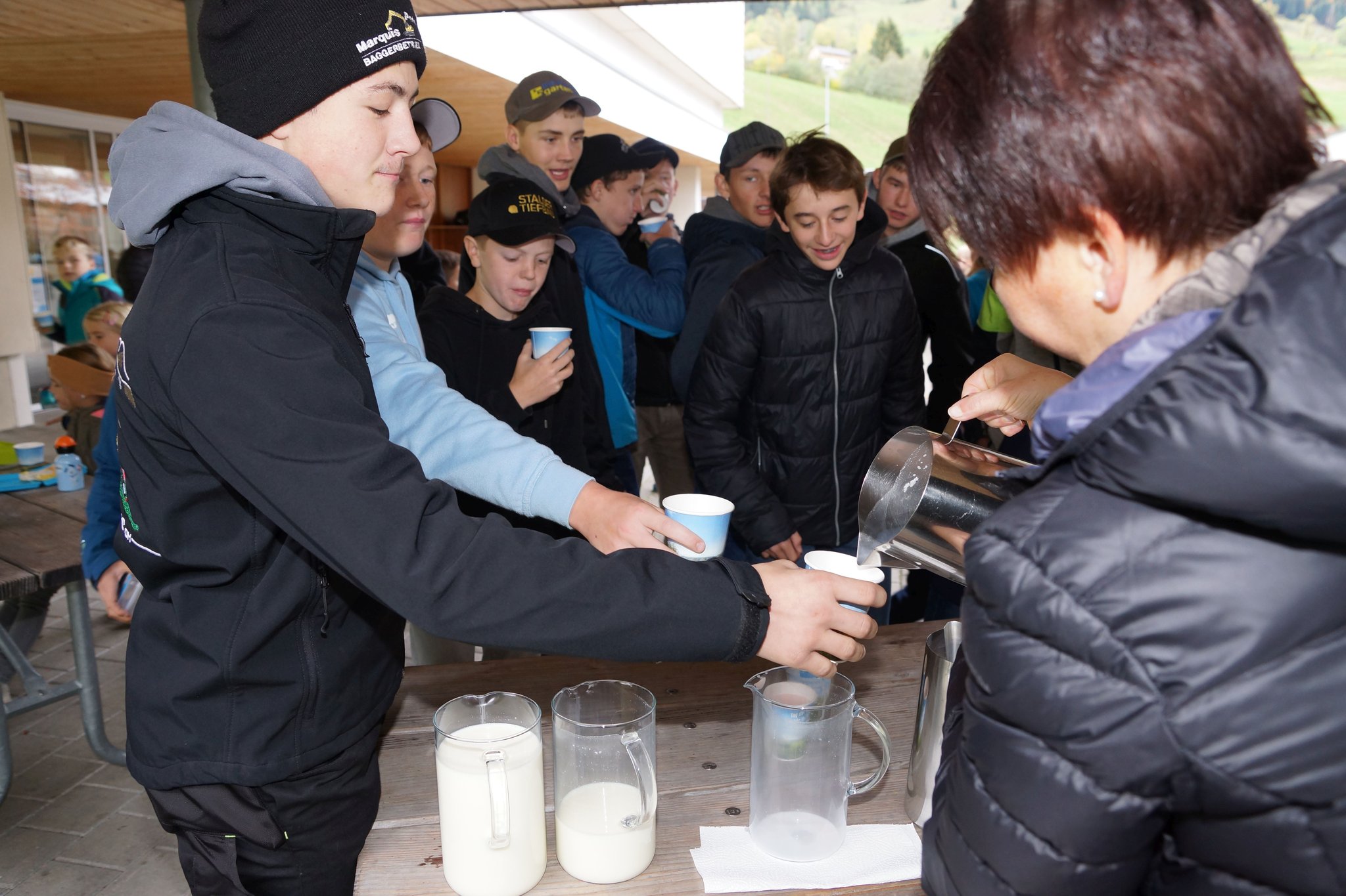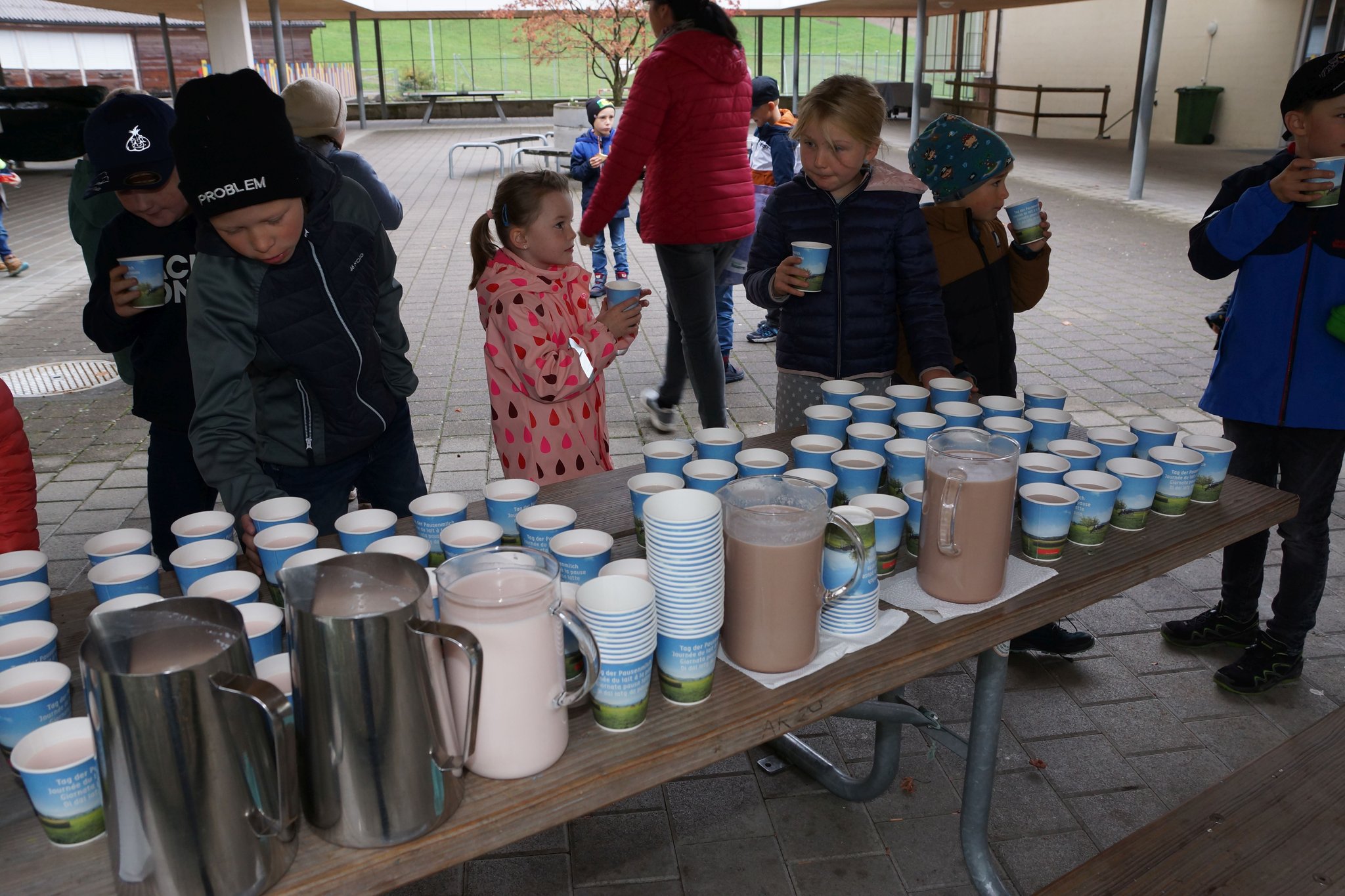Die Vormittagspausen des 31. Oktobers 2023 waren an den meisten Schulen der Schweiz dem Tag der Pausenmilch verschrieben. So auch an der Schule Flühli-Sörenberg, wo in beiden Schulhäusern den Schülerinnen und Schülern von Frauen des Bauern- und Bäuerinnenvereins Milchshakes angeboten wurden. In Flühli waren es Anita Tanner und Anita Schnider, welche Shakes mit Erdbeer- und Schoggiaroma oder einfach normale Milch ausschenkten. Und es schmeckte köstlich. Nicht weniger als 50 Liter Milch vermochten die rund 150 Kinder und Jugendlichen in Flühli zu verschlingen. Der Tag der Pausenmilch ist auch immer mit Wettbewerben verbunden. Im Zyklus 1 erkoren die Kinder den Sieger in einem Wetthüpfen. Der Zyklus 2 führte ein Kahoot-Quiz durch und beim Zyklus 3 war eine Schätzfrage zur Anzahl gesömmerter Milchkühe in der Region Entlebuch zu lösen. Im Zyklus 1 siegte Dario Distel (1. Klasse), im Zyklus 2 Anna Bichsel (6. Klasse) und im Zyklus 3 Dominik Bieri (3. ISS). Herzlichen Dank den Frauen des Bauern- und Bäuerinnenvereins Flühli-Sörenberg für ihr tolles Engagement.