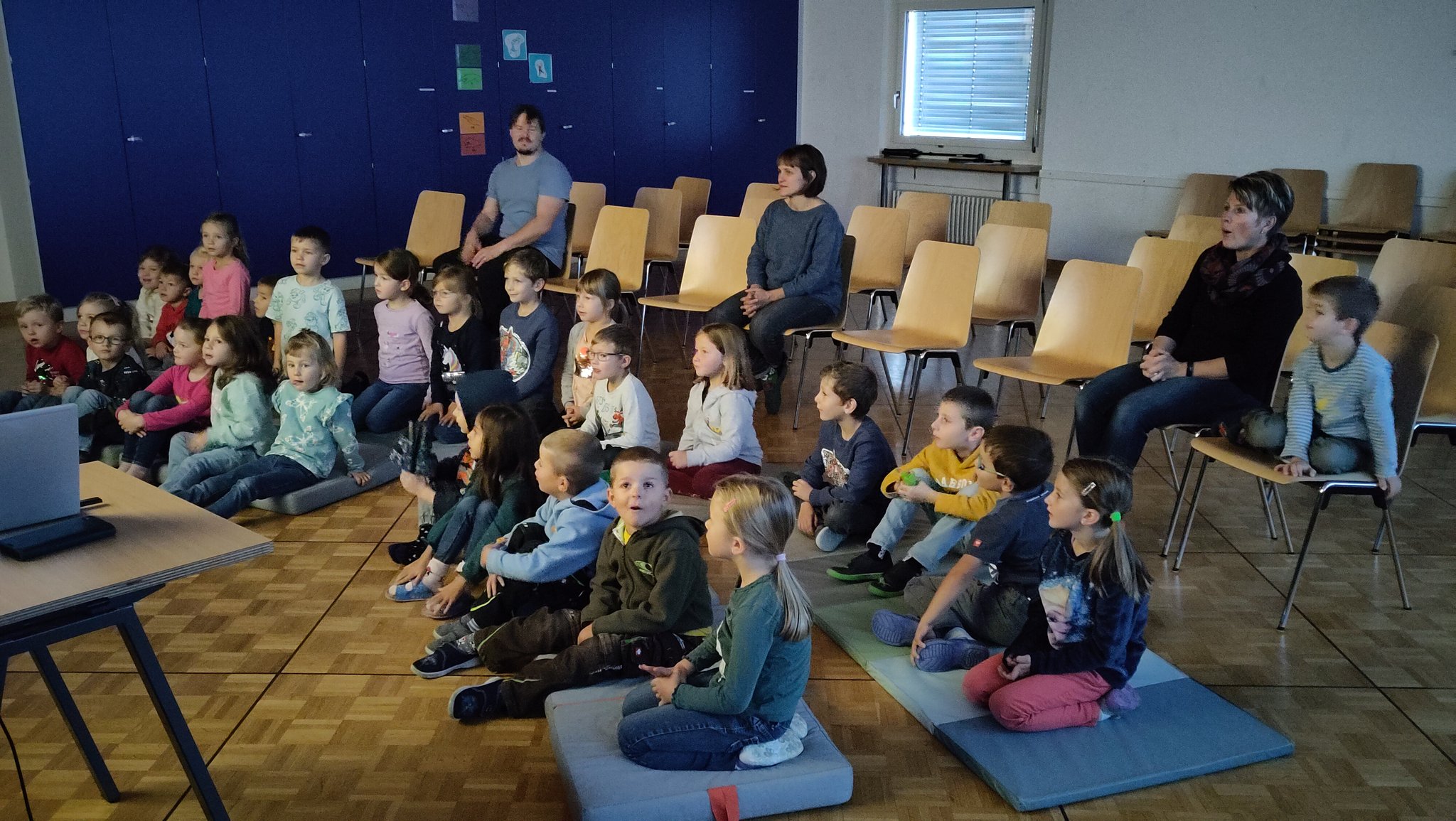 Die Kinder der Basisstufen befassten sich während zwei Vormittagen im Lesemonat November intensiv mit dem Thema «Lesen, Schreiben, Geschichten erfinden und hören». Dazu gehörte auch eine spannende Autorenlesung von Enna Miau, welche exklusiv in die Schweiz angereist ist. Mit im Gepäck hatte sie die kleine Biene Millie. Die kleine Biene Millie ist eine neugierige Biene, welche alles wissen möchte. Dabei haben wir dank Millie viel über die Pilze erfahren. Zum Beispiel, dass der Fliegenpilz seine weissen Punkte seit Geburt trägt. Aus der weissen Knolle spriesst später ein Stiel und ein Hut. Dabei platzt die weisse Knolle auf und die weissen Punkte sind noch die letzten Fetzen dieser Knolle. Die Kinder durften zwei spannende gemeinsame Vormittage erleben, welche bestimmt mit der Geschichte und dem Lied der kleine Biene Millie lange in Erinnerung bleibt.