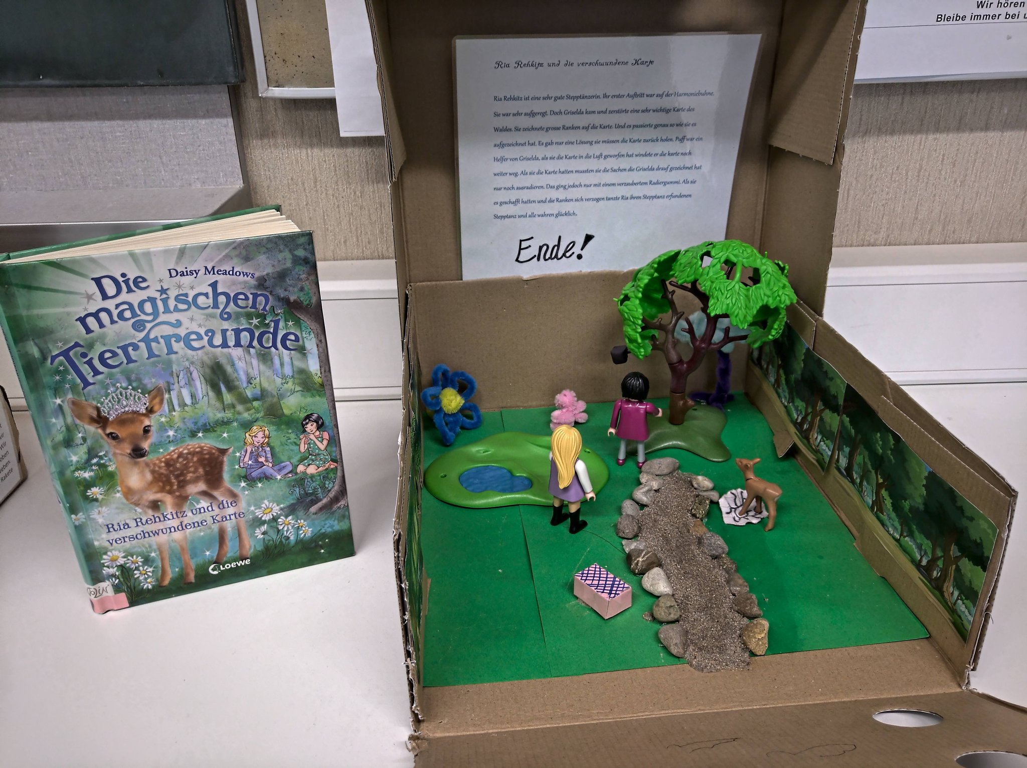 Für die abschliessende Buchpräsentation am Ende der Leseeinheit durften alle Lernenden ihre Lieblingsszene aus dem Buch in einem Schuhkkarton szenisch darstellen.
