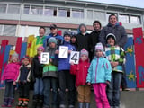 Stolz präsentiert eine Gruppe von Schülerinnen und Schülern die Ziffern 5,7,4 und zeigen damit an, dass in der Vorweihnachtszeit 574 Geschenke verteilt wurden. In der Adventszeit nahmen sich Lernende und Lehrpersonen 574 x ZEIT um jemanden mit ZEIT zu beschenkten. 574 x Freude verbreiten mit einem kleinen Geschenk. Bravo und ein grosses Dankeschön an alle die sich so grosszügig Zeit für andere Menschen genommen haben.