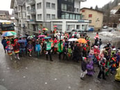 Die Schulfasnacht begann mit einem Umzug durchs Dorf, musikalisch untermalt von der schuleigenen Guggenmusik unter der Leitung von Patrick Schöpfer. Beim Schulhaus mussten alle durch die Zeitmaschine um endgültig in der Fasnachts(zeit) anzukommen.